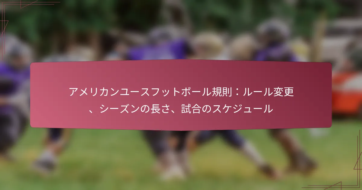 アメリカのユースフットボール規則は、チーム編成、試合の時間、得点に関する基本的なガイドラインを定めており、若いアスリートにとって安全で公正な環境を確保しています。チームのルールは年齢層やリーグによって異なり、試合は通常1時間から2時間の間で、クォーターまたはハーフに構成されています。得点は特定のプレイに基づき、タッチダウンやフィールドゴールに対して指定されたポイントが与えられます。これらのダイナミクスを理解することは、すべての参加者にとって効果的なゲームプレイのために重要です。