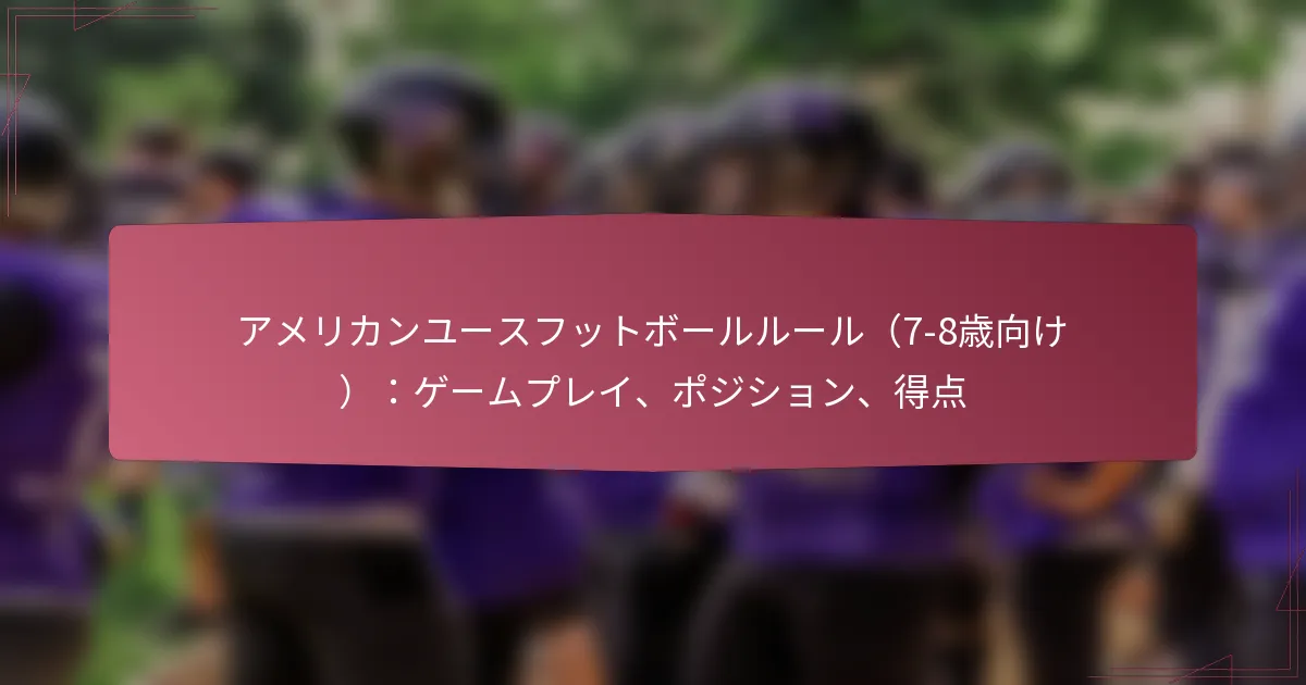 9-10歳向けのアメリカのユースフットボールの主要なルールは、安全性を確保し、公平なプレーを促進し、若い選手に合わせて伝統的なフットボールの規則を適応させることに焦点を当てています。これらのルールは、スキル開発のためのポジティブな環境を作り出し、怪我のリスクを最小限に抑えるのに役立ちます。