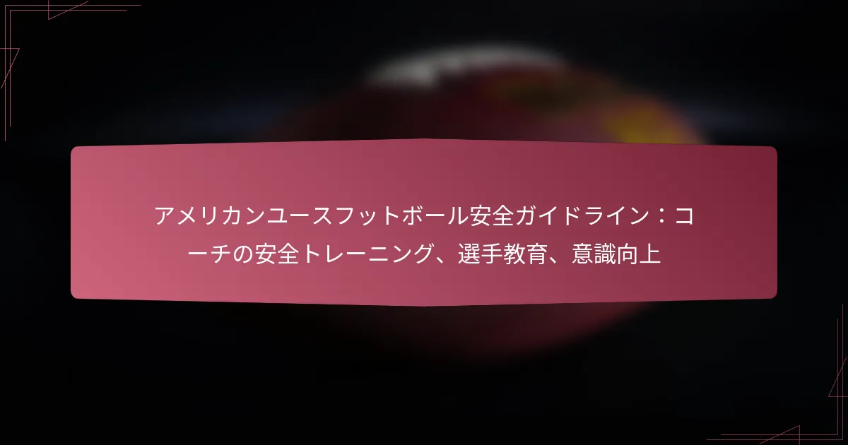 サッカーにおける若いアスリートの安全を確保することは最も重要であり、それは怪我の予防と安全なプレイ環境を強調する包括的な安全ガイドラインから始まります。重要な要素には、徹底したコーチの安全トレーニング、効果的な選手教育、すべての参加者の意識の強調が含まれます。コーチに必要な知識を提供し、選手に年齢に応じたリソースを提供することで、若いサッカーにおける安全文化を育むことができます。