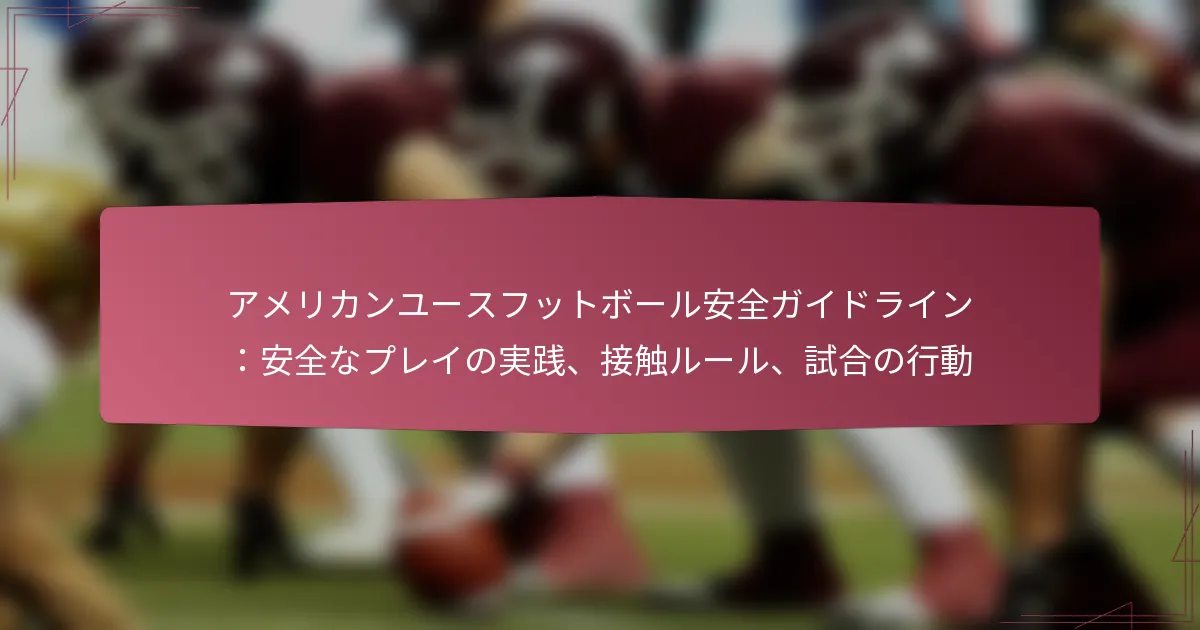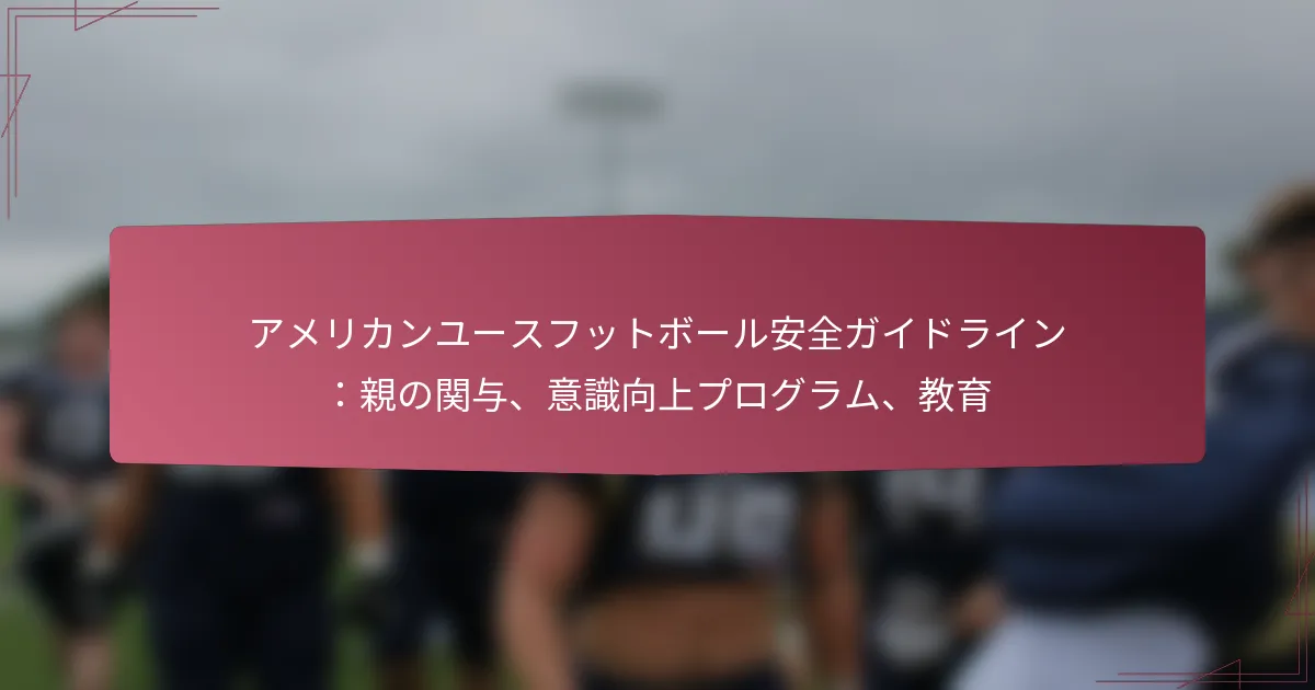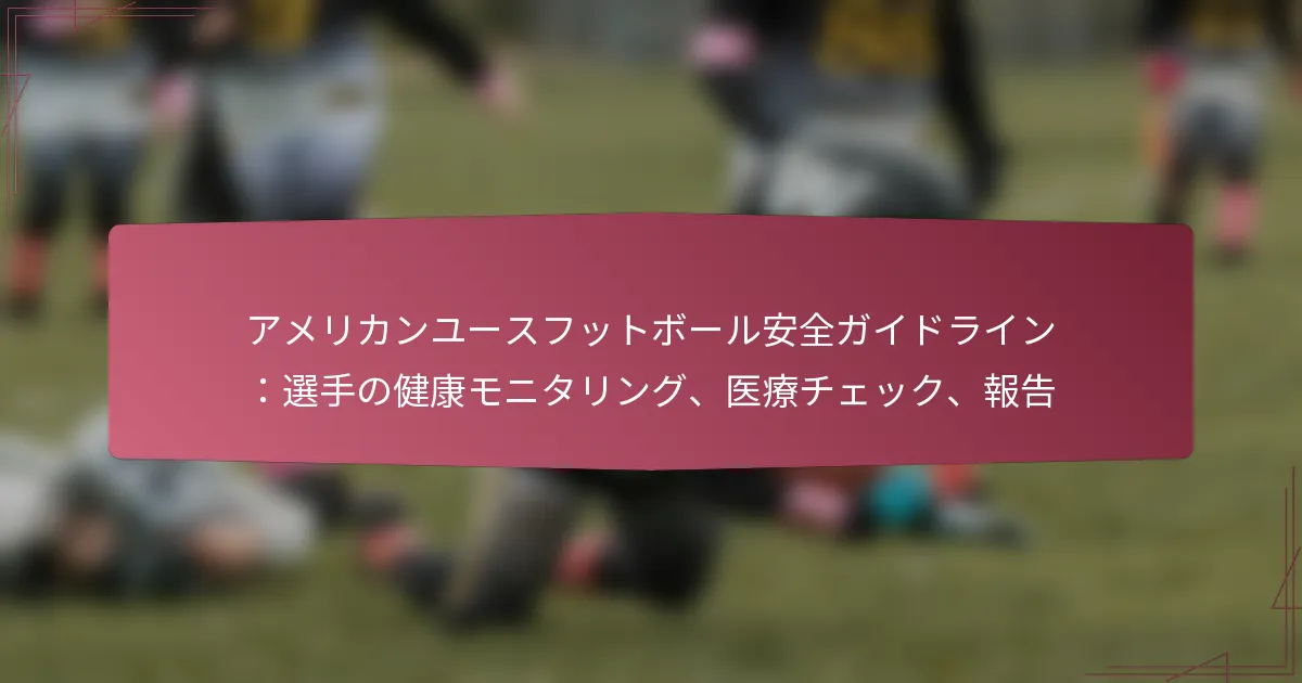 アメリカのユースフットボールにおける若いアスリートの安全を確保することは、親、コーチ、コミュニティが共有する責任です。重要なガイドラインは、適切なギアの重要性、練習時間の制限、効果的な怪我管理プロトコルの重要性を強調しています。親が意識向上プログラムや教育イニシアチブに積極的に参加することで、安全なプレイ環境の確保に大きく貢献し、スポーツにおける健康問題に関するコミュニケーションを促進できます。